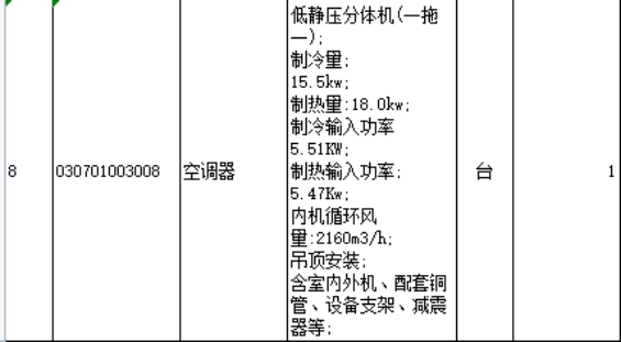 2、原采購文件工程量控制價清單中:制冷量:15.5kw